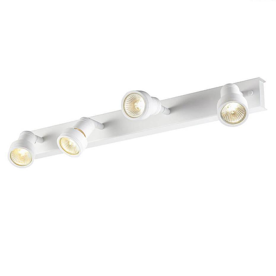 Для спота необходима 4 галогеновые лампы 50 W и цоколем GU10. Габариты изделия: высота – 86 мм, диаметр – мм.