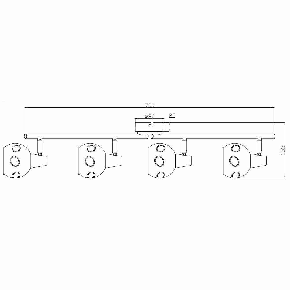Для спота необходима 4 светодиодные лампы 40 W и цоколем E14. Габариты изделия: высота – 155 мм, диаметр – мм.