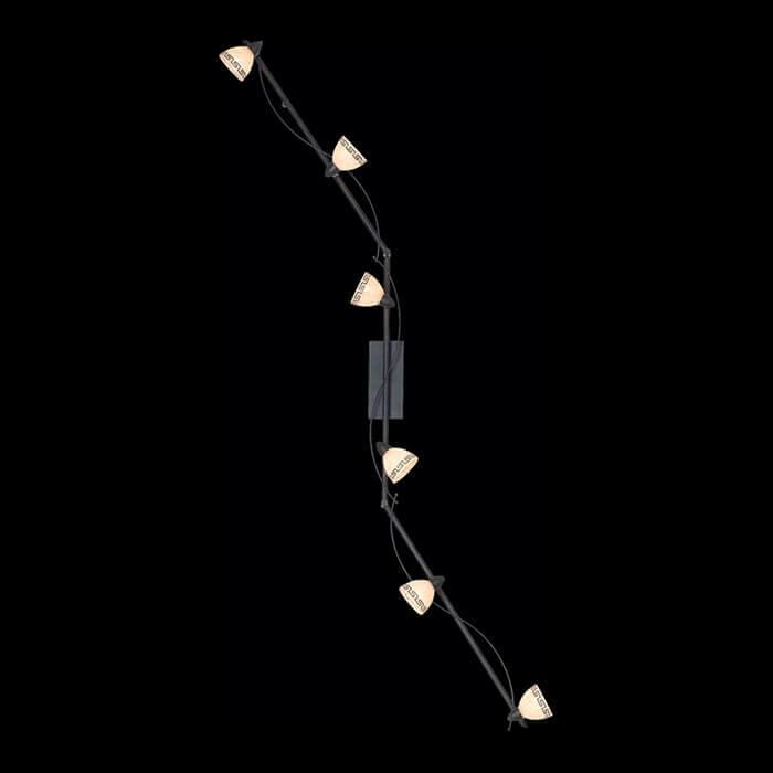 Для спота необходима 6 галогеновых ламп 40 W и цоколем G9. Габариты изделия: высота – 170 мм, диаметр – мм.