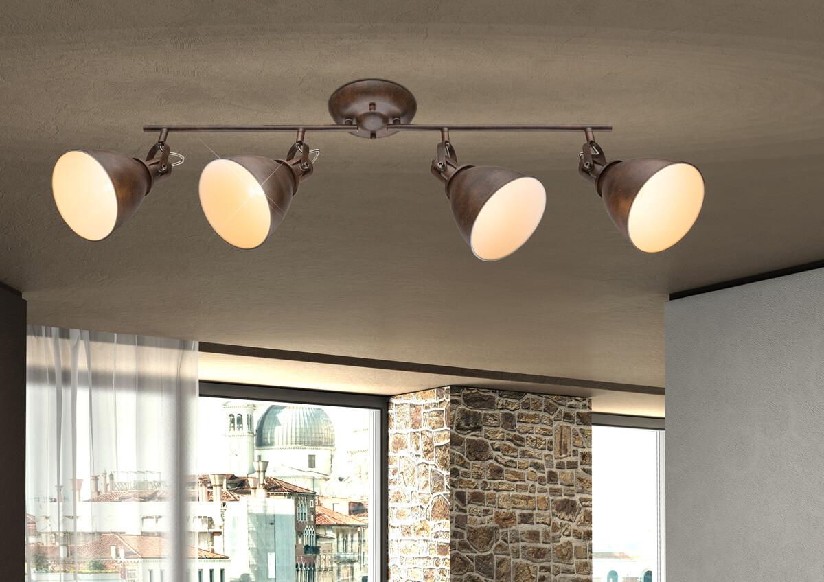 Спот Globo Giorgio 54647-4 от Австрийского бренда Globo из коллекции Giorgio предназначен для установки в прихожей на потолок в лофт стиле. Спот с металлической арматурой коричневого цвета и коричневого цвета плафонами из металла, формы овала предназначен для освещения 8,9 м2.