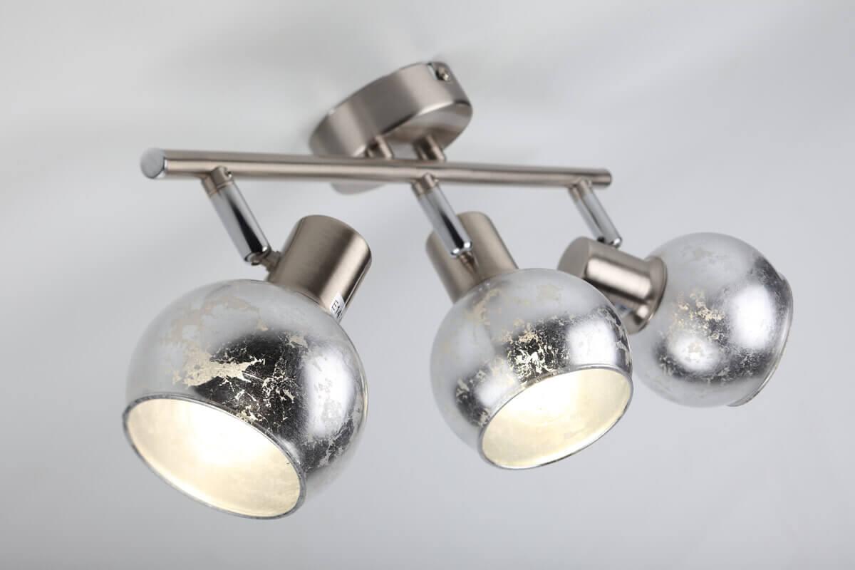 Спот Rivoli Craquelure 7008-732 от Итальянского бренда Rivoli из коллекции Craquelure предназначен для установки в спальни на потолок в стиле модерн. Спот с металлической арматурой цвета матовый никель и серебрянного цвета плафонами из стекла, формы круга предназначен для освещения 8 м2.