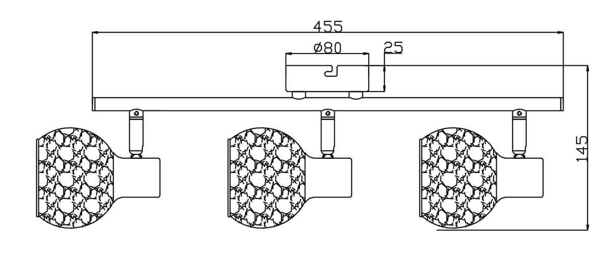 Для спота необходима 3 лампы накаливания 40 W и цоколем E14. Габариты изделия: высота – 100 мм, диаметр – мм.