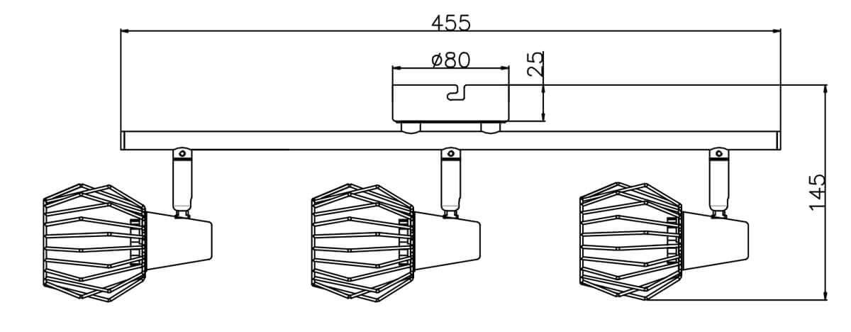 Для спота необходима 3 лампы накаливания 40 W и цоколем E14. Габариты изделия: высота – 100 мм, диаметр – мм.