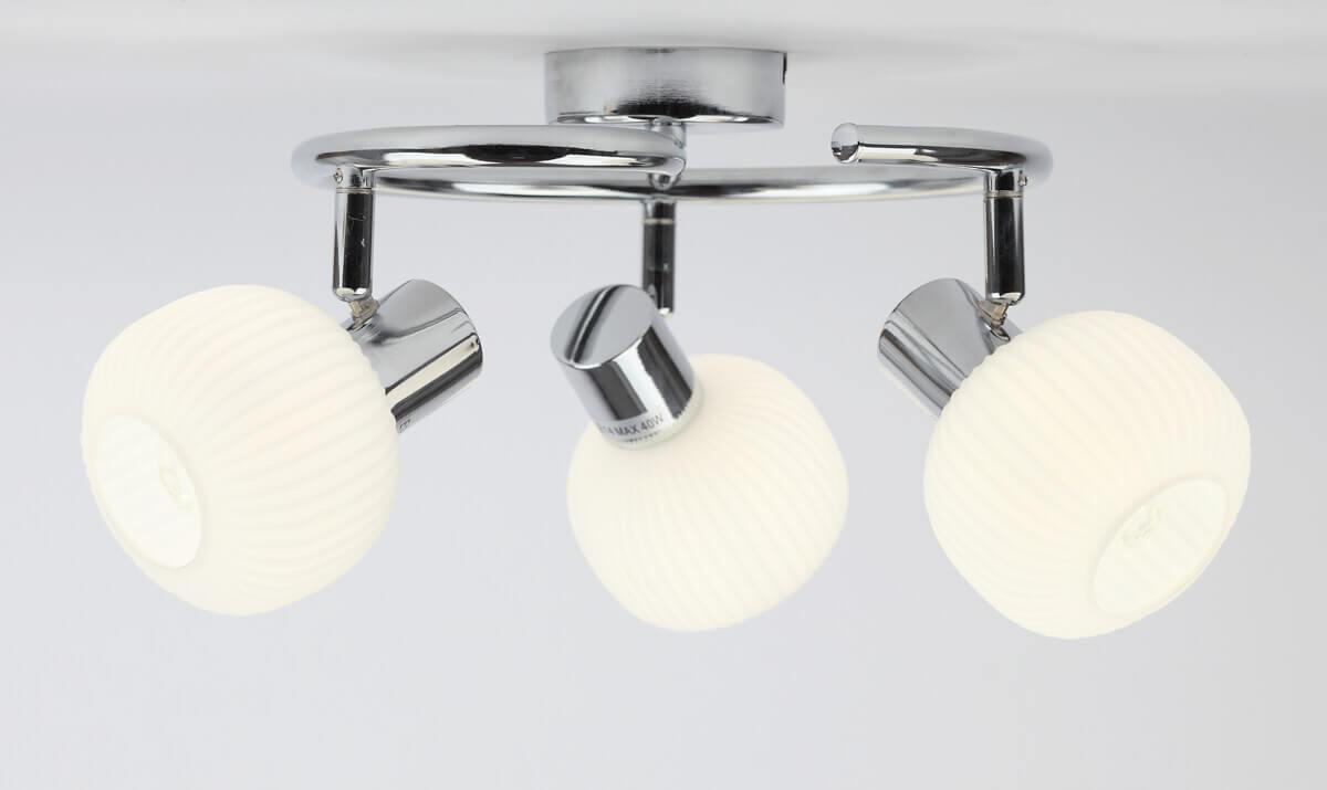 Для спота необходима 3 лампы накаливания 40 W и цоколем E14. Габариты изделия: высота – 100 мм, диаметр – мм.