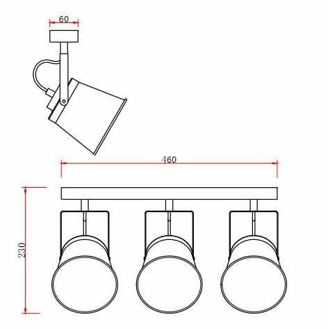 Для спота необходима 3 лампы накаливания 40 W и цоколем E27. Габариты изделия: высота – 230 мм, диаметр – мм.