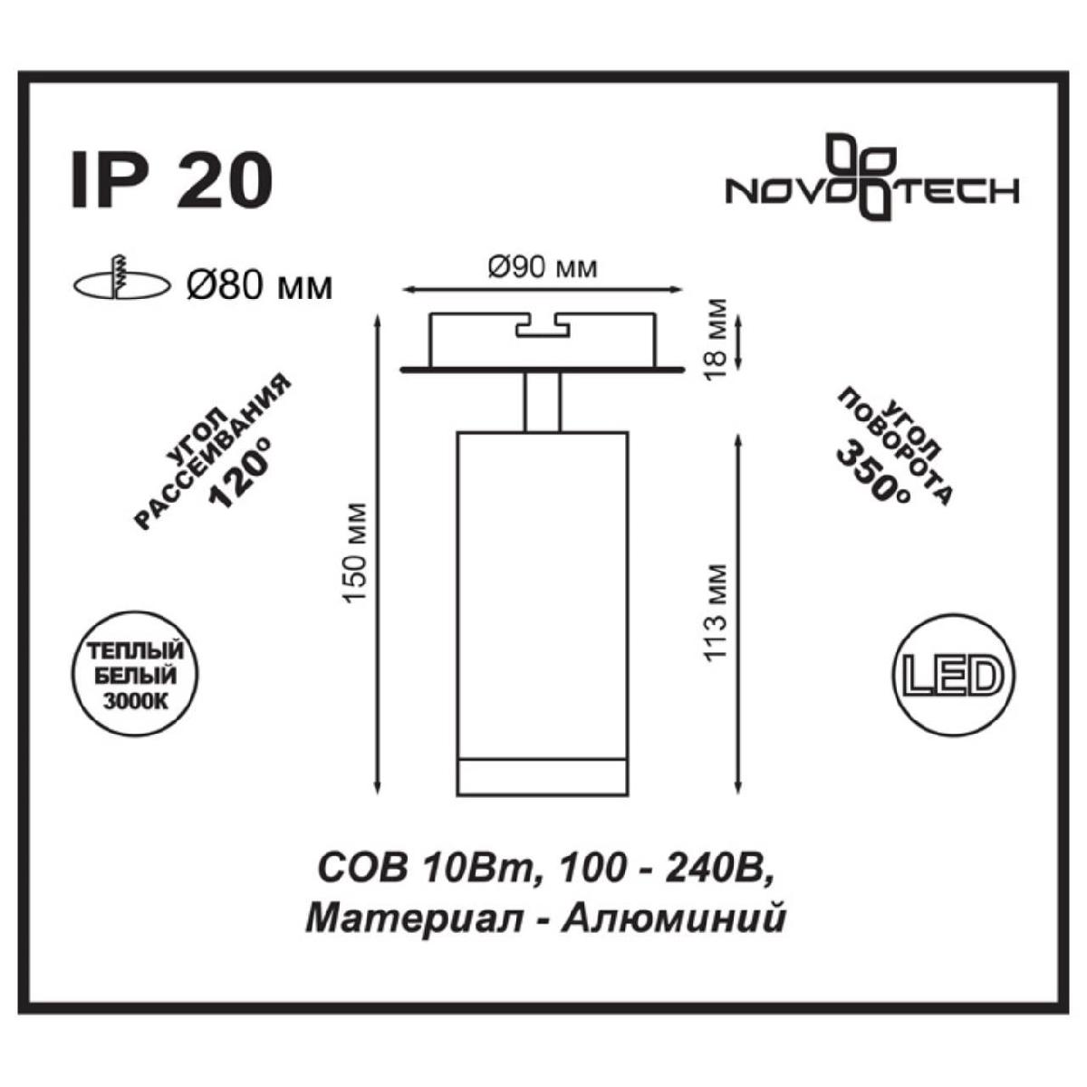 Для спота необходима светодиодных ламп 10 W и цоколем LED. Габариты изделия: высота – 150 мм, диаметр – мм.