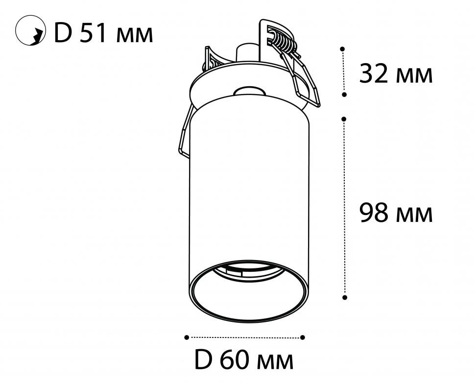 Для спота необходима 1 светодиодная лампа 9 W и цоколем GU10. Габариты изделия: высота – 98 мм, диаметр – 60 мм.