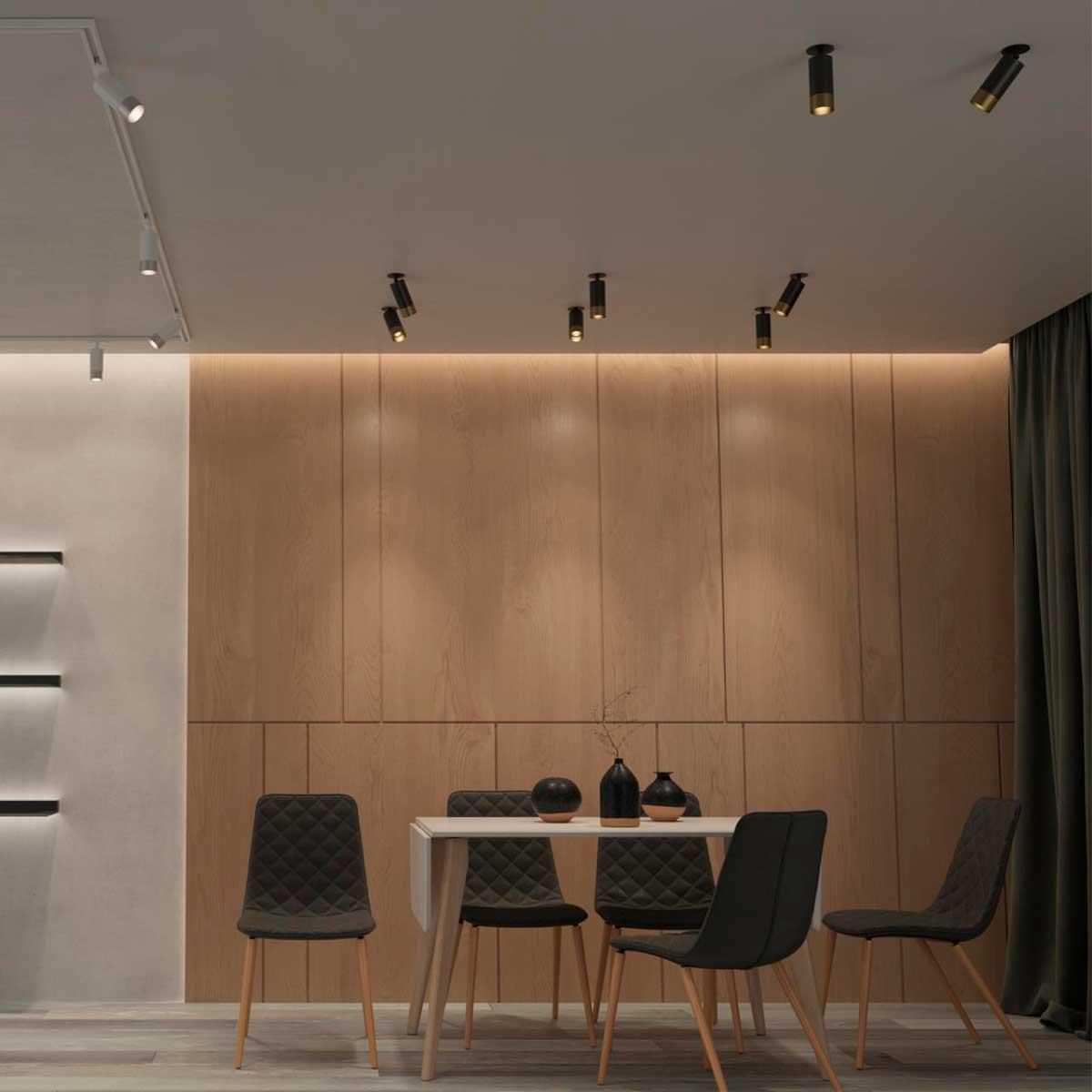 Для спота необходима 1 светодиодная лампа 9 W и цоколем GU10. Габариты изделия: высота – 155 мм, диаметр – 60 мм.