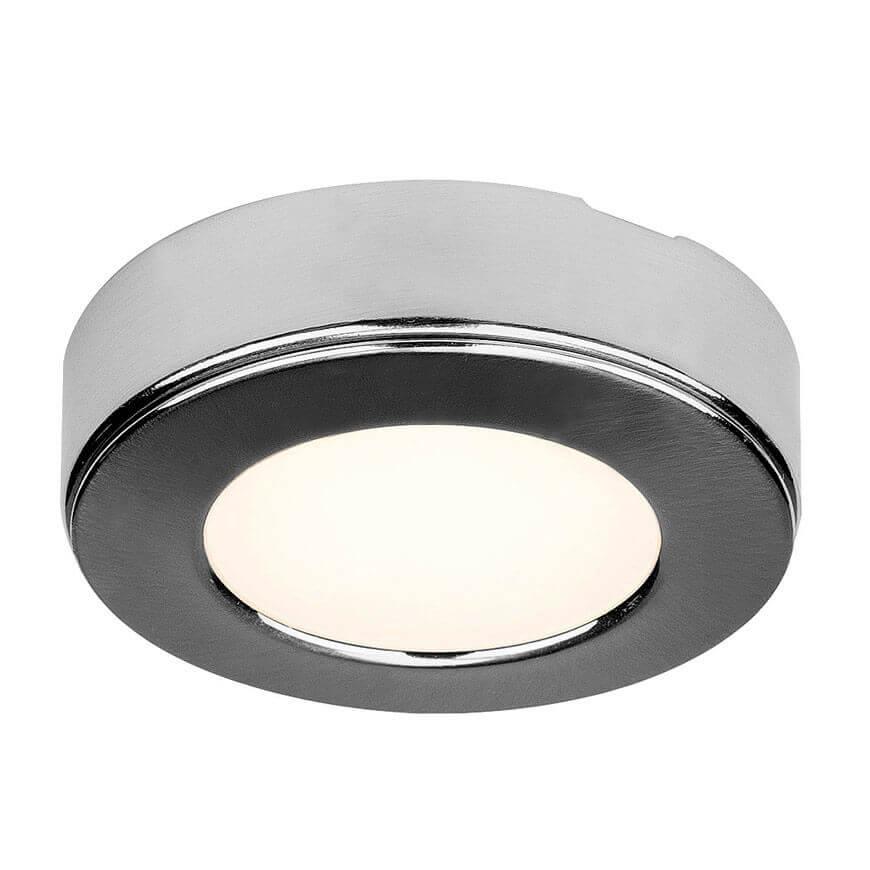 Для светильника необходима W. Габариты изделия: высота – 15 мм, диаметр – 66 мм.