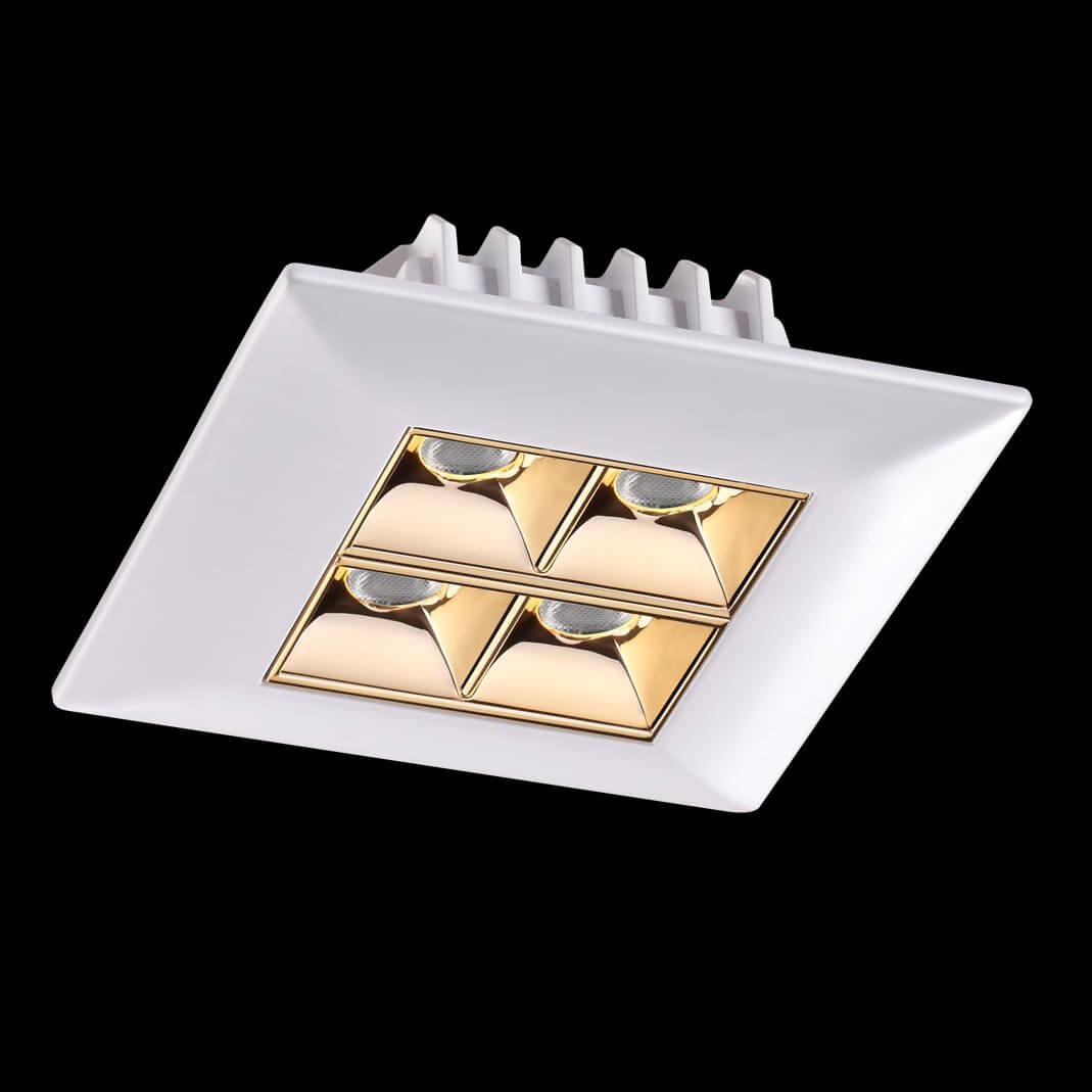 Встраиваемый светодиодный светильник Novotech Antey 357834 от Венгерского бренда Novotech из коллекции Spot предназначен для установки врезания в ванной в хай-тек стиле. Cветильник в форме квадрата с алюмииневой арматурой белого цвета и залотого цвета плафонами из металла предназначен для освещения м2.