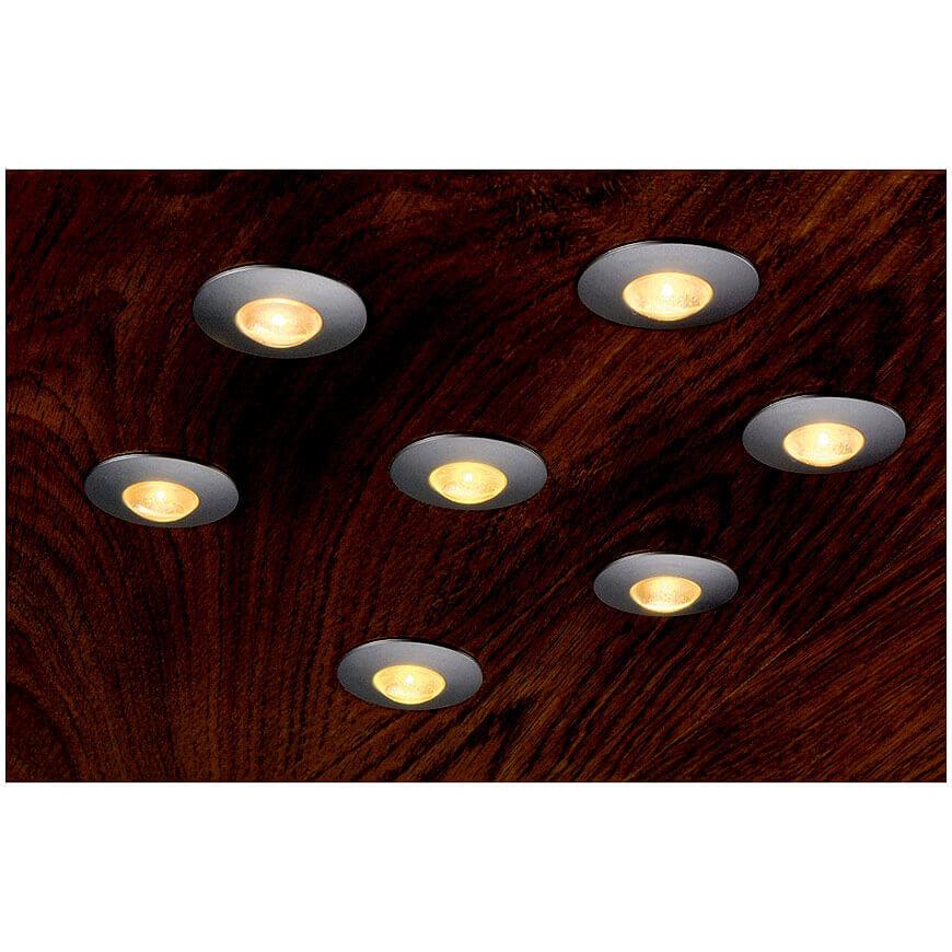 Для светильника необходима светодиодных ламп 1 W. Габариты изделия: высота – 5 мм, диаметр – 30 мм.