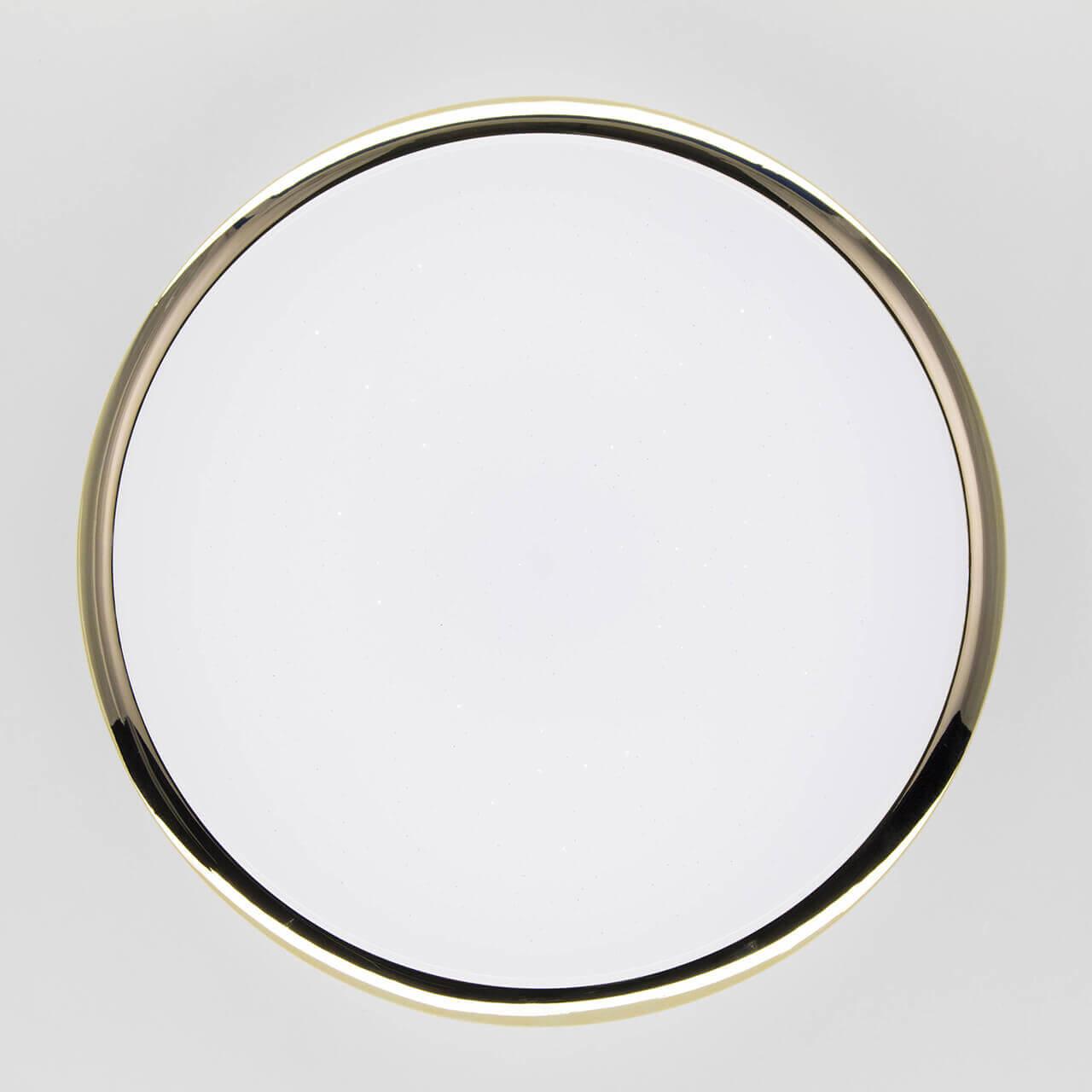 Потолочный светодиодный светильник Citilux СтарЛайт CL70342 от Датского бренда Citilux из коллекции СтарЛайт предназначен для установки на потолок в ванной в современном стиле. Cветильник в форме круга с металлической арматурой залотого цвета и белого цвета плафонами из стекла предназначен для освещения м2.
