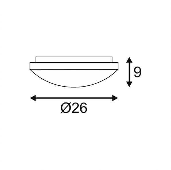 Для светильника необходима светодиодных ламп 13 W. Габариты изделия: высота – 90 мм, диаметр – 260 мм.