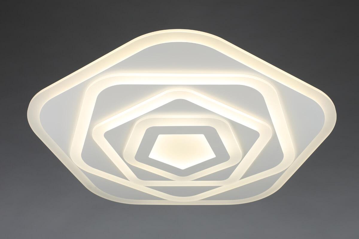 Потолочный светодиодный светильник с пультом ДУ Omnilux Monteluro OML-05407-120 от Китайского бренда Omnilux из коллекции Monteluro предназначен для установки на потолок в гостиной в современном стиле. Cветильник в форме декоративного с металлической арматурой белого цвета и белого цвета плафонами из металла предназначен для освещения 40 м2.
