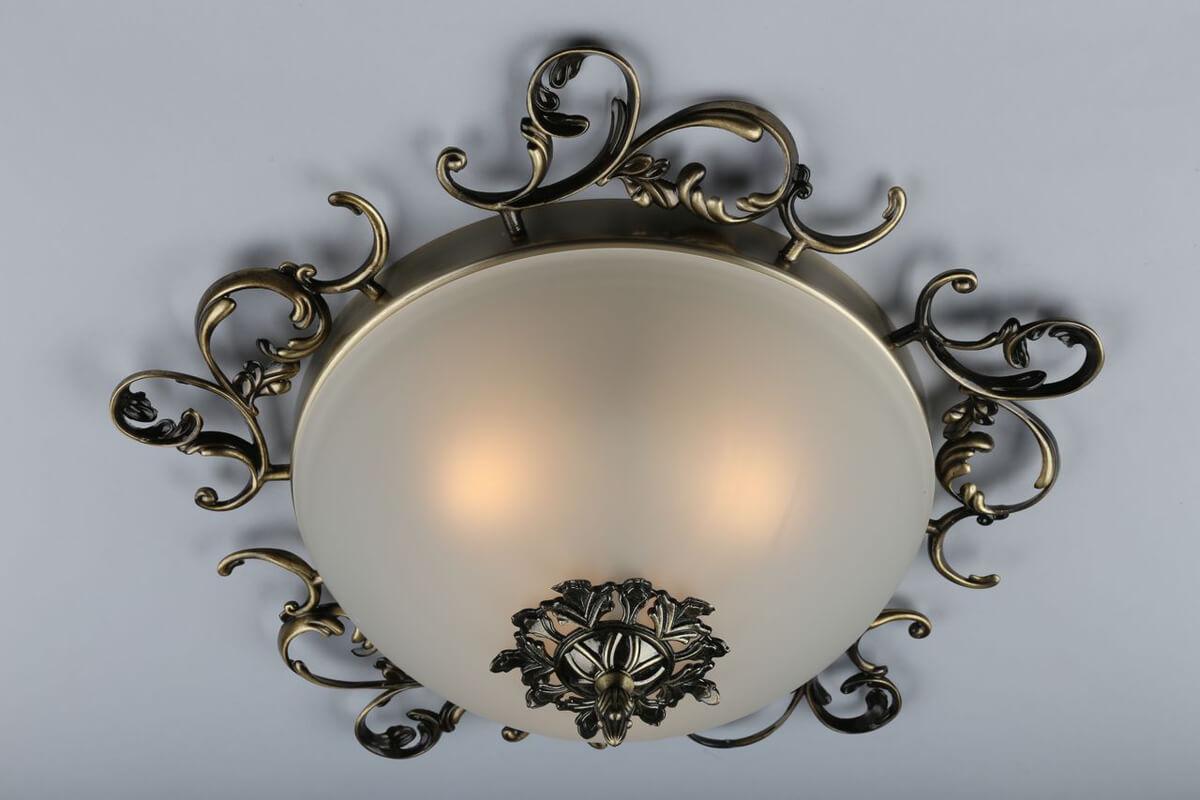 Потолочный светильник Omnilux OML-76407-03 от Китайского бренда Omnilux из коллекции OML-764 предназначен для установки на потолок в гостиной в классиком стиле. Cветильник в форме круга с металлической арматурой бронзового цвета и белого цвета плафонами из стекла предназначен для освещения 7 м2.
