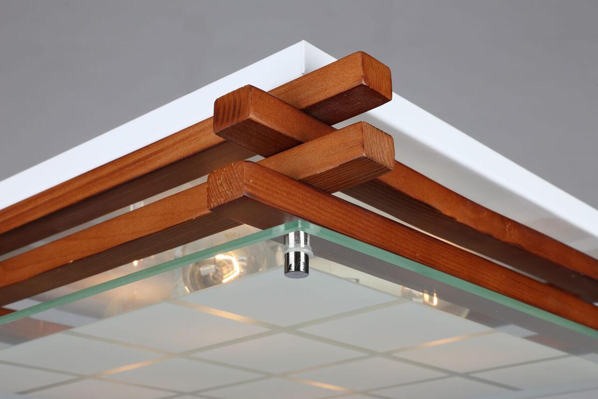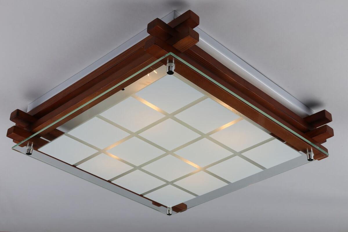 Потолочный светильник Omnilux OML-40527-04 от Китайского бренда Omnilux из коллекции OML-405 предназначен для установки на потолок в кухне в стиле кантри. Cветильник в форме квадрата с деревянной арматурой коричневого цвета и белого цвета плафонами из стекла предназначен для освещения 9 м2.