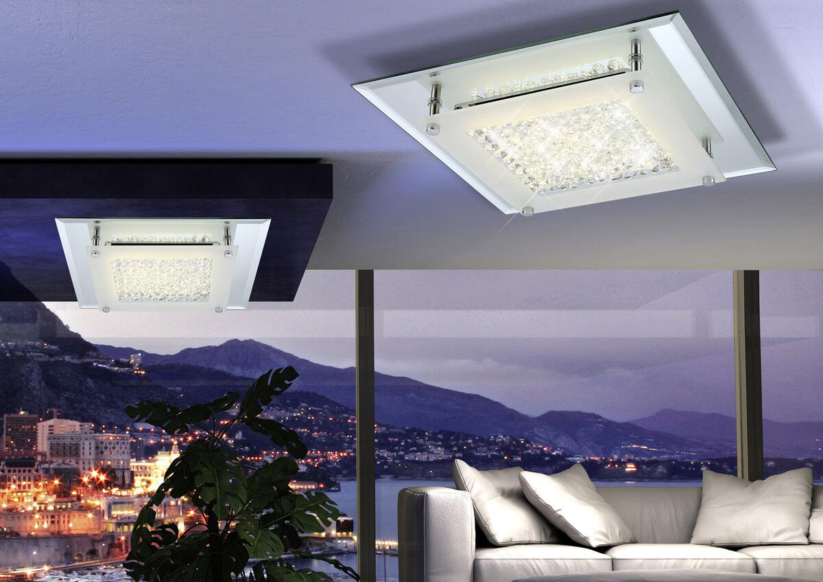 Потолочный светодиодный светильник Globo Liana 49300 от бренда Globo из коллекции Liana предназначен для установки на потолок в прихожей в современном стиле. Cветильник в форме квадрата с металлической арматурой цвет хрома и белого цвета плафонами из стекла предназначен для освещения м2.