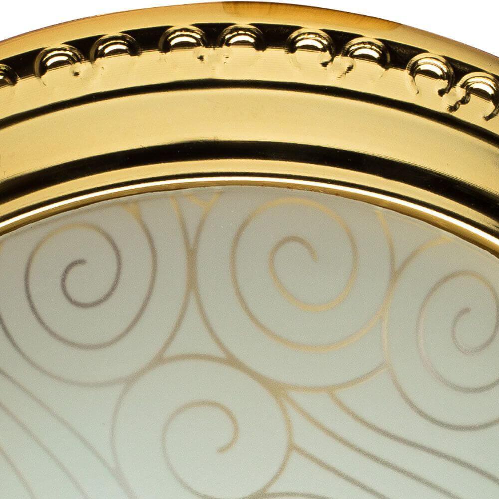 Потолочный светильник Arte Lamp 28 A3013PL-2GO от Итальянского бренда Arte Lamp из коллекции 28 предназначен для установки на потолок в кухне в классиком стиле. Cветильник в форме полукруга с металлической арматурой залотого цвета и белого цвета плафонами из стекла предназначен для освещения 4,4 м2.