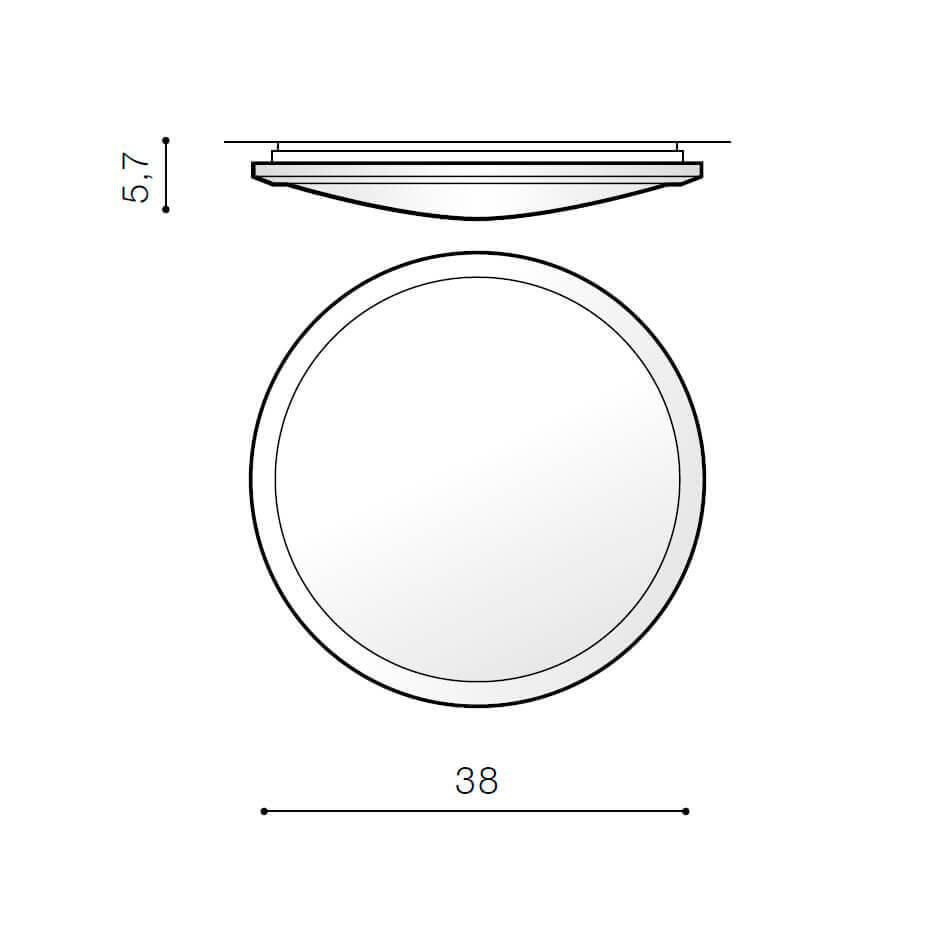 Для светильника необходима светодиодных ламп 24 W. Габариты изделия: высота – 57 мм, диаметр – 380 мм.