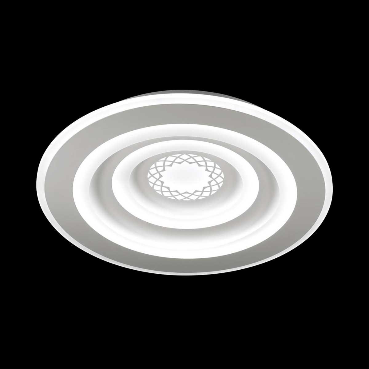 Для светильника необходима светодиодных ламп 158 W. Габариты изделия: высота – 70 мм, диаметр – 490 мм.