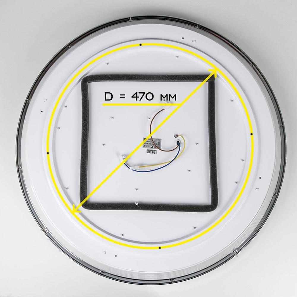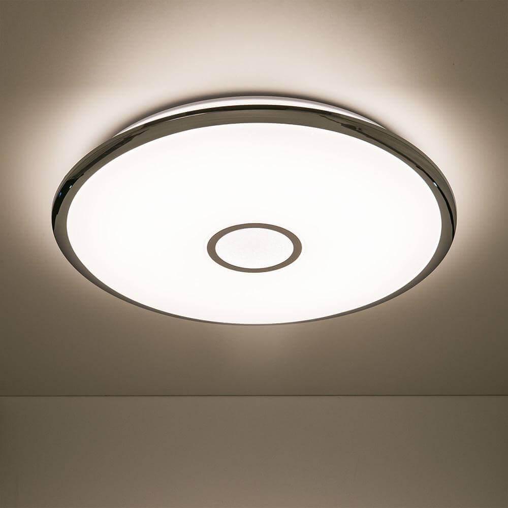 Потолочный светодиодный светильник Citilux Старлайт Смарт CL703A100G от Китайского бренда Citilux из коллекции Старлайт Смарт предназначен для установки на потолок в гостиной в современном стиле. Cветильник в форме круга с металлической арматурой цвет хрома и белого цвета плафонами из полимера предназначен для освещения 45 м2.