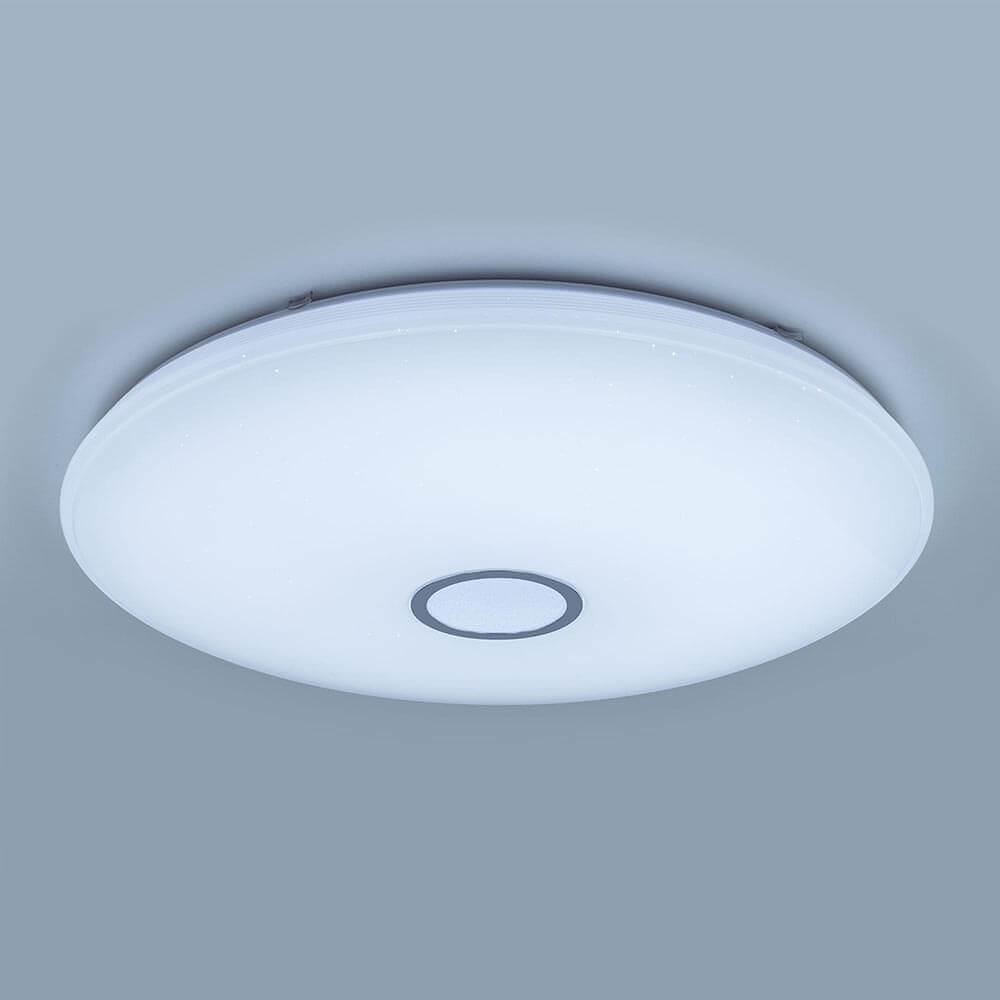 Потолочный светодиодный светильник Citilux Старлайт Смарт CL703A140G от Китайского бренда Citilux из коллекции Старлайт Смарт предназначен для установки на потолок в гостиной в современном стиле. Cветильник в форме круга с металлической арматурой цвет хрома и белого цвета плафонами из полимера предназначен для освещения 48 м2.