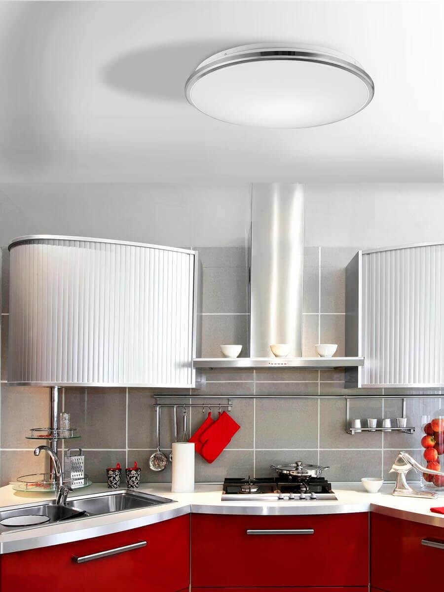 Для светильника необходима светодиодных ламп 10 W. Габариты изделия: высота – 52 мм, диаметр – 280 мм.