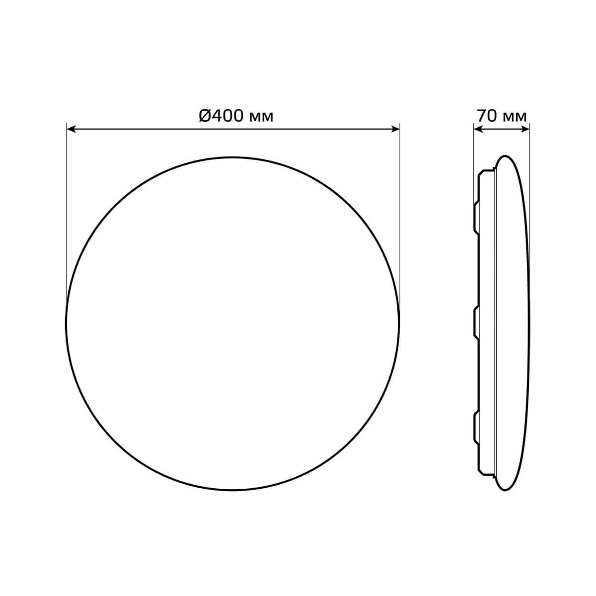 Для светильника необходима светодиодных ламп 25 W. Габариты изделия: высота – 70 мм, диаметр – 400 мм.