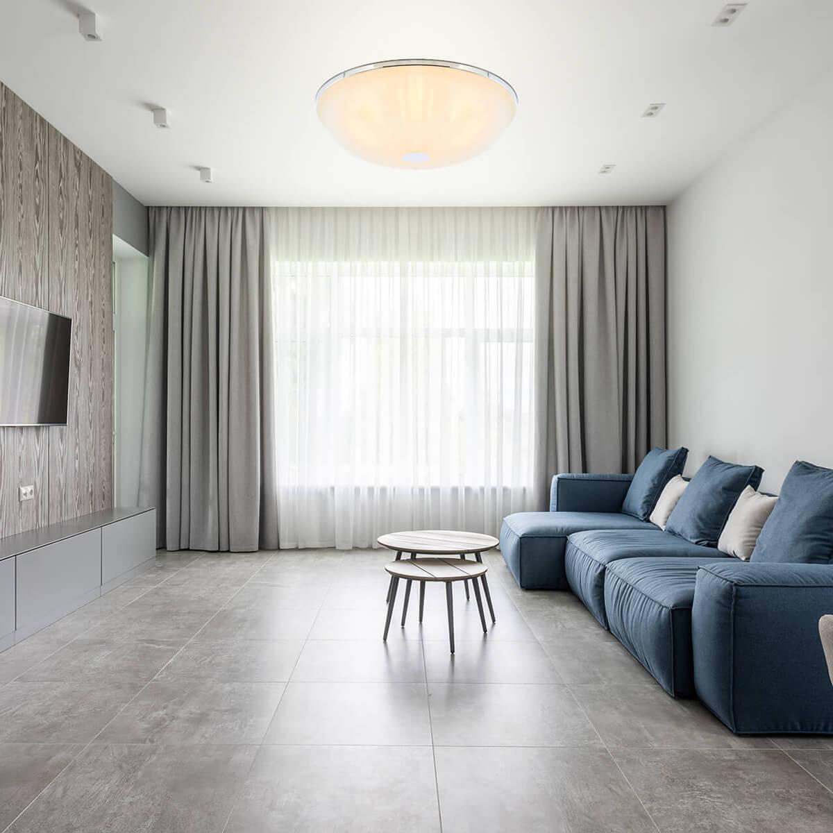 Для светильника необходима 3 лампы накаливания 40 W. Габариты изделия: высота – 85 мм, диаметр – 300 мм.