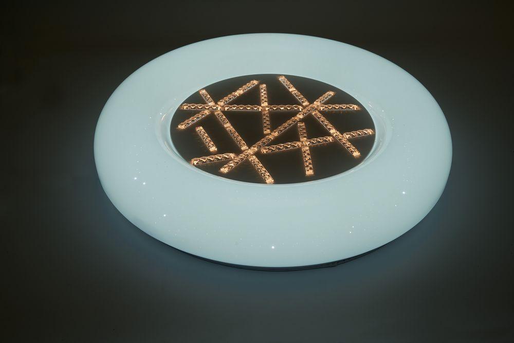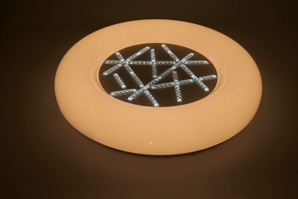 Для светильника необходима светодиодных ламп 80 W. Габариты изделия: высота – 85 мм, диаметр – 480 мм.