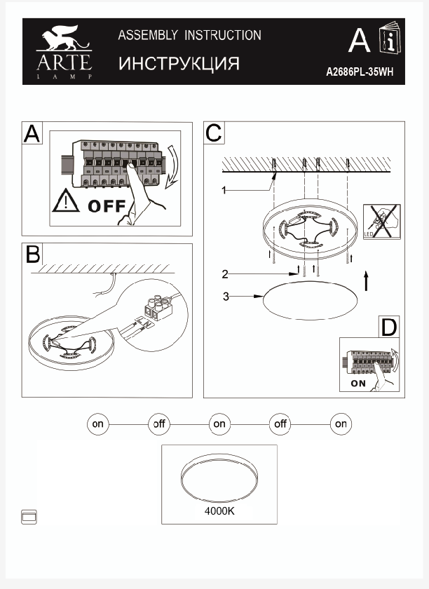 Для светильника необходима светодиодных ламп 35 W. Габариты изделия: высота – 50 мм, диаметр – 500 мм.