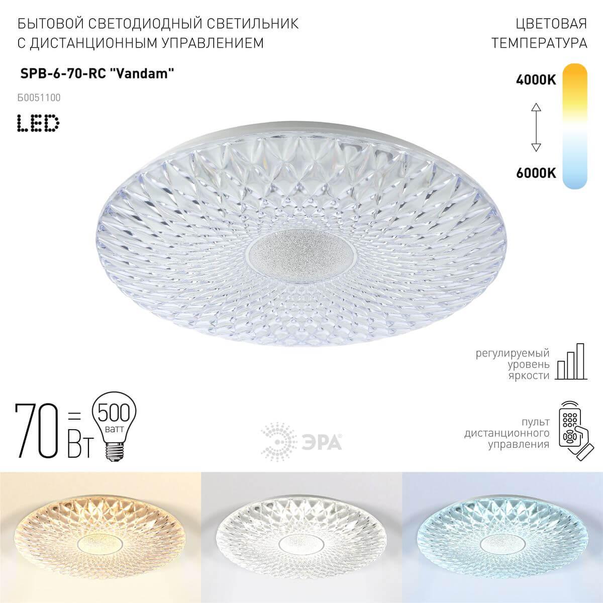Потолочный светодиодный светильник ЭРА SPB-6-70-RC Vandam Б0051100