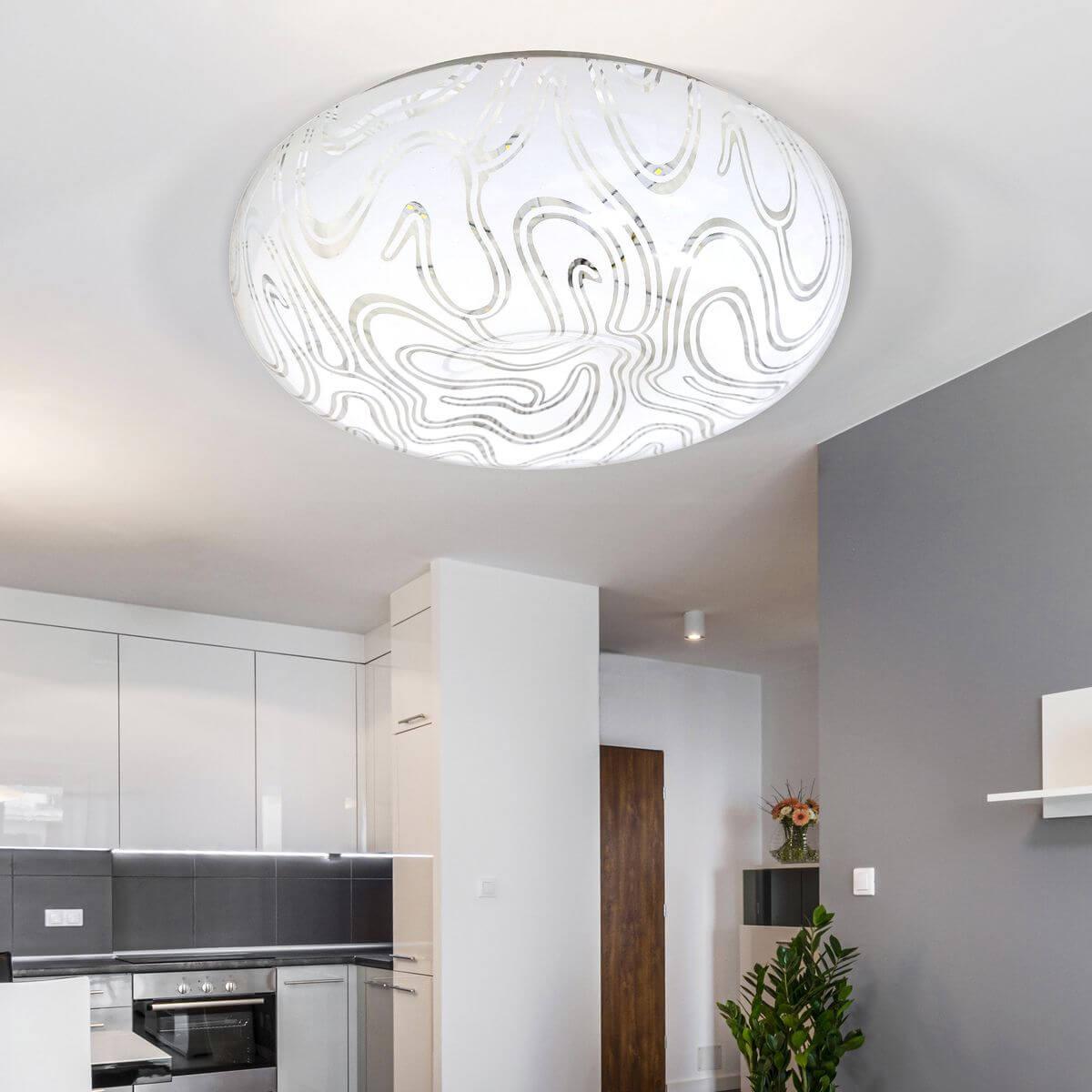 Для светильника необходима светодиодных ламп 18 W. Габариты изделия: высота – 85 мм, диаметр – 256 мм.