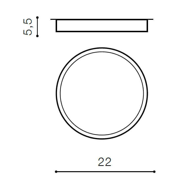 Для светильника необходима светодиодных ламп 20 W. Габариты изделия: высота – 55 мм, диаметр – 220 мм.