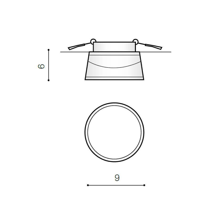 Для светильника необходима светодиодных ламп 7 W. Габариты изделия: высота – 60 мм, диаметр – 90 мм.