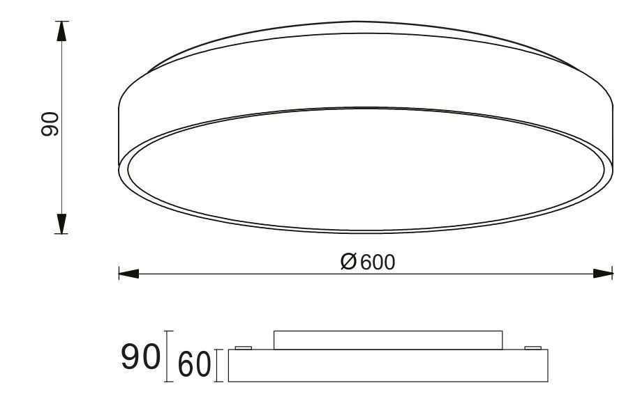 Для светильника необходима светодиодных ламп W. Габариты изделия: высота – 90 мм, диаметр – 600 мм.