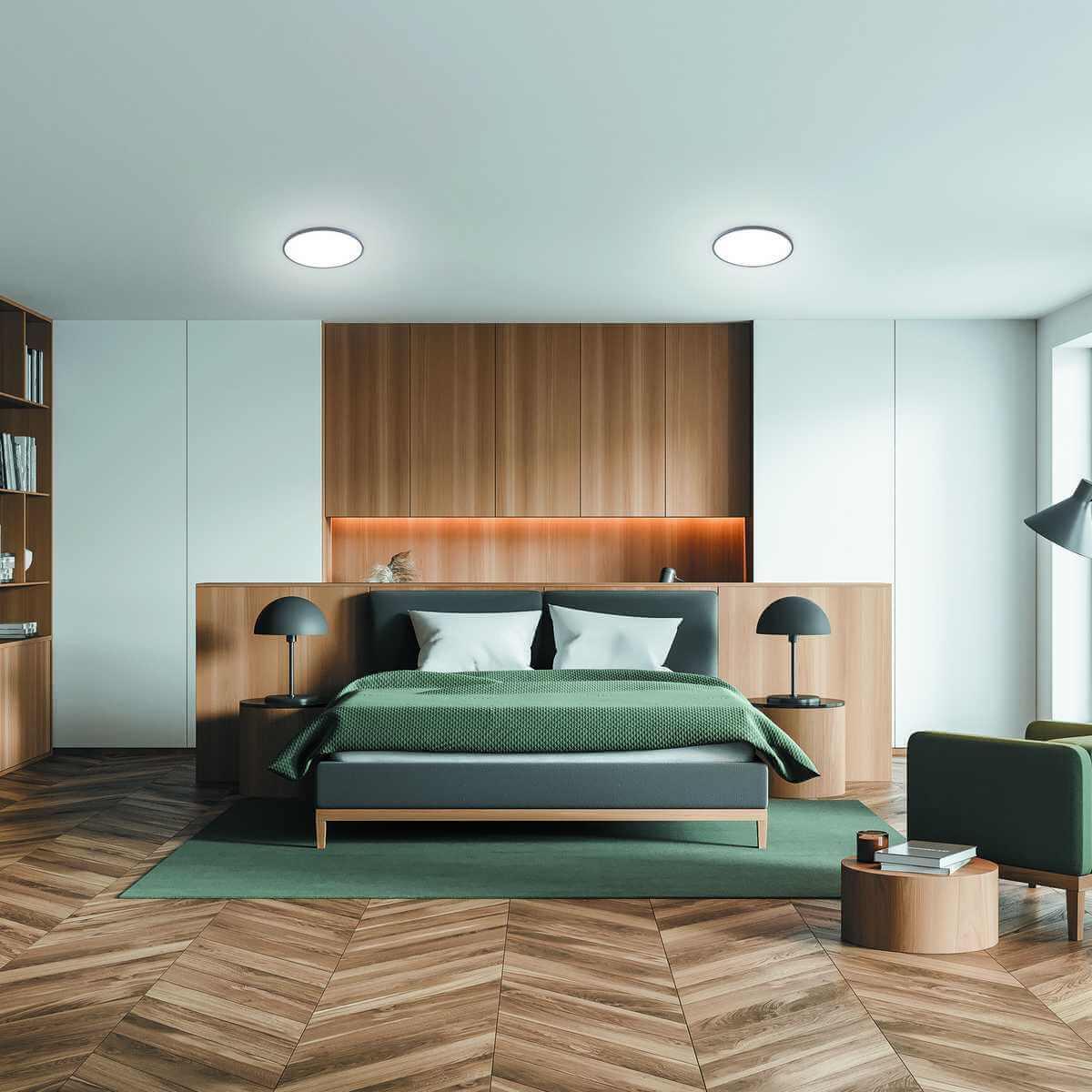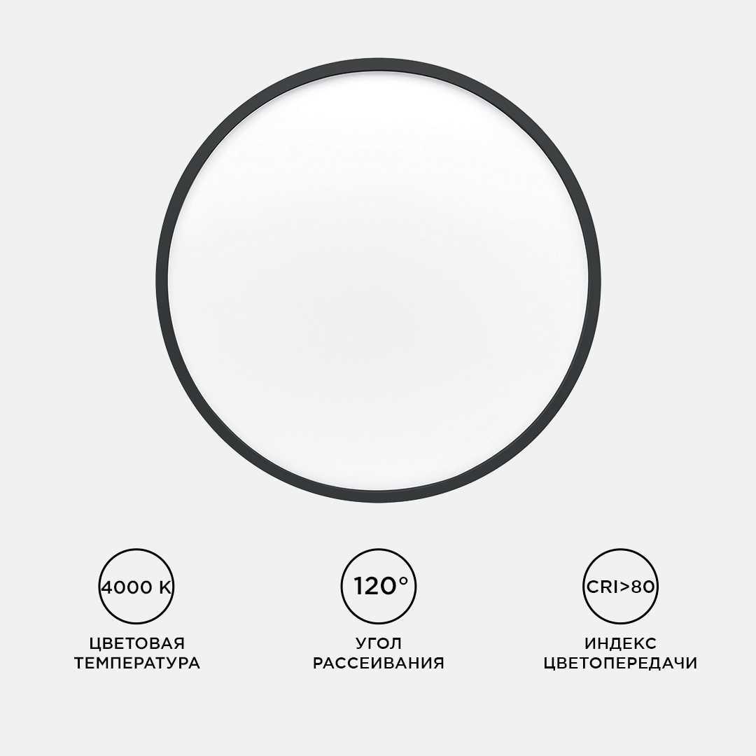 Для светильника необходима 1 светодиодная лампа 28 W. Габариты изделия: высота – 25 мм, диаметр – 300 мм.