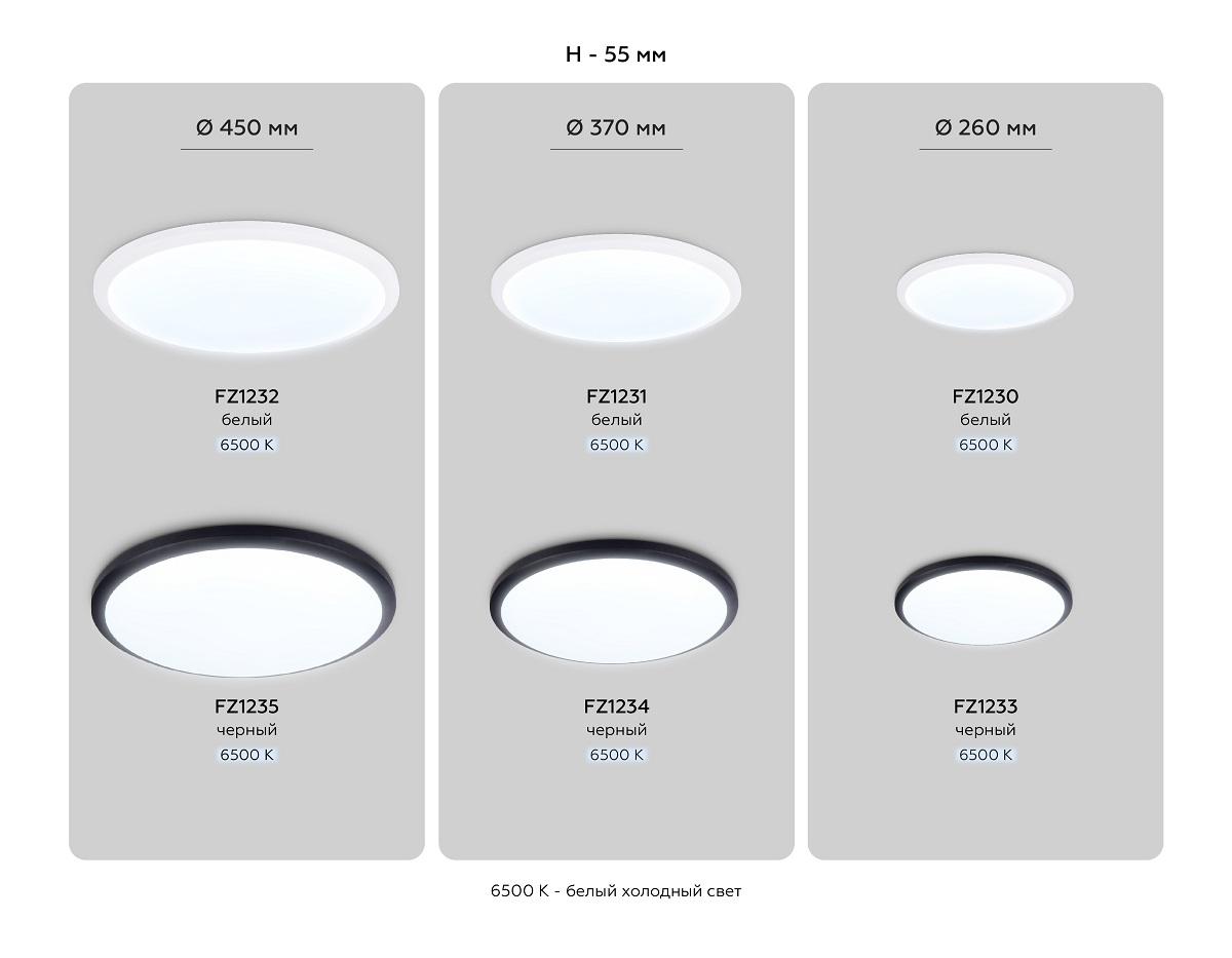 Для светильника необходима светодиодных ламп 42 W. Габариты изделия: высота – 55 мм, диаметр – 370 мм.