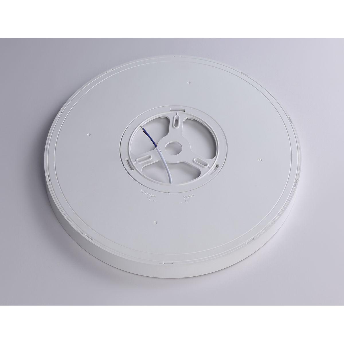 Для светильника необходима 1 светодиодная лампа 20 W. Габариты изделия: высота – 15 мм, диаметр – 270 мм.