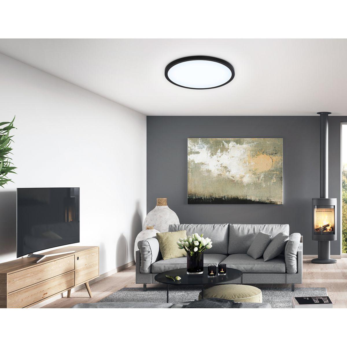 Для светильника необходима 1 светодиодная лампа 26 W. Габариты изделия: высота – 15 мм, диаметр – 370 мм.