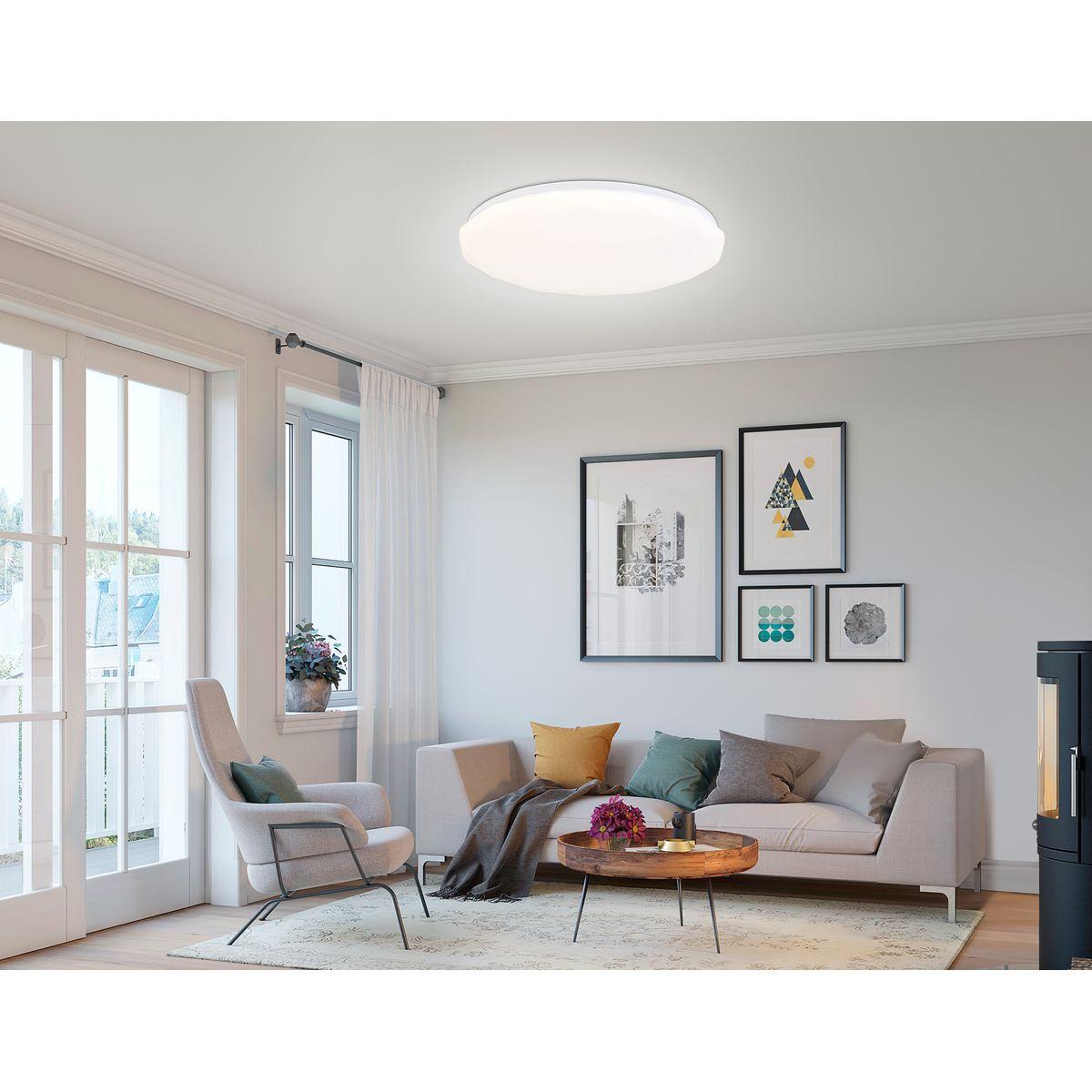 Для светильника необходима 1 светодиодная лампа 66 W. Габариты изделия: высота – 65 мм, диаметр – 480 мм.