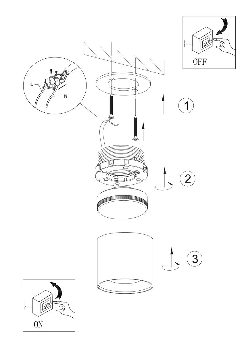 Для светильника необходима 1 светодиодная лампа 12 W. Габариты изделия: высота – 96 мм, диаметр – 83 мм.