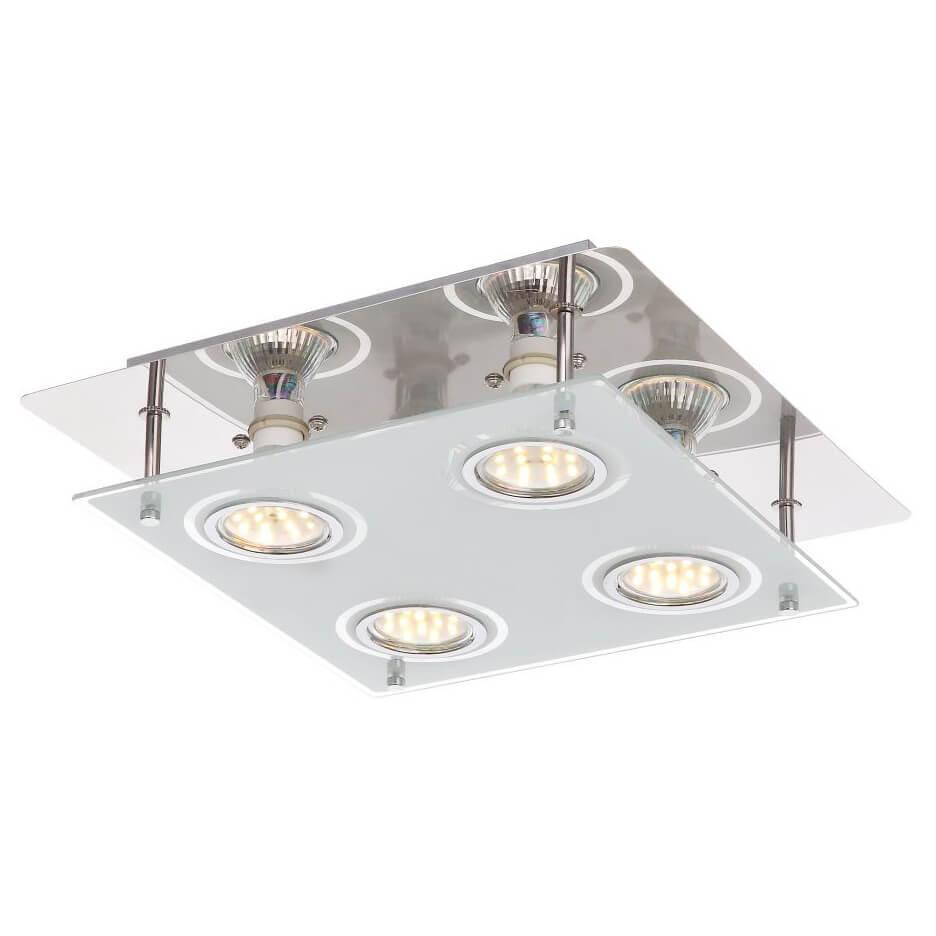 Потолочный светодиодный светильник Globo Rene 48970-4 от Австрийского бренда Globo из коллекции Rene предназначен для установки на потолок в кухне в хай-тек стиле. Cветильник в форме квадрата с металлической арматурой цвет хрома и белого цвета плафонами из стекла предназначен для освещения 6 м2.