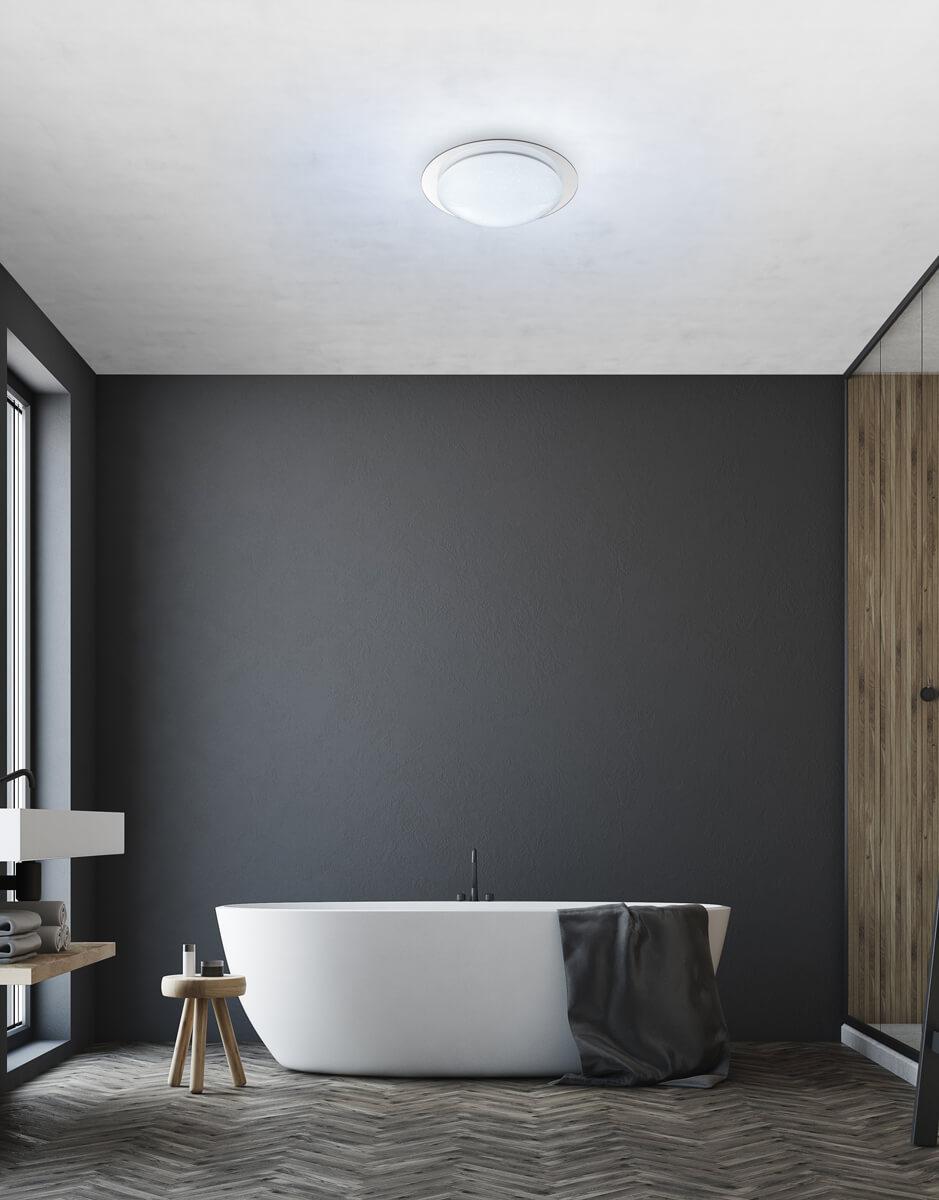 Для светильника необходима светодиодных ламп 18 W. Габариты изделия: высота – 105 мм, диаметр – 450 мм.