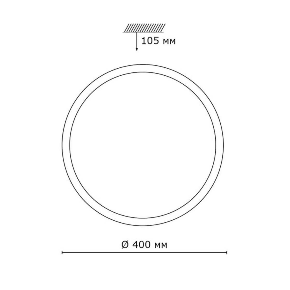 Для светильника необходима светодиодных ламп 72 W. Габариты изделия: высота – 105 мм, диаметр – 400 мм.