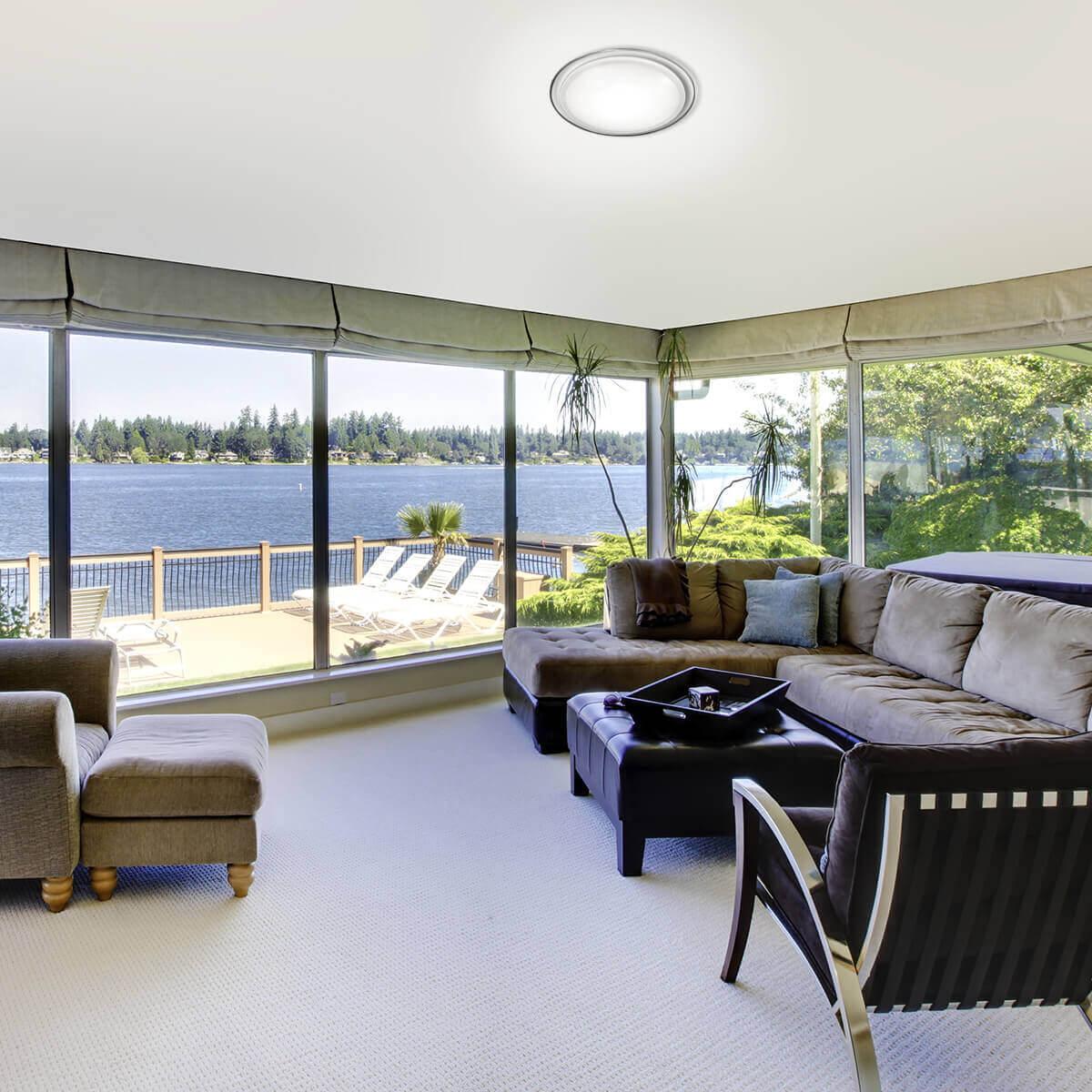 Для светильника необходима светодиодных ламп 72 W. Габариты изделия: высота – 80 мм, диаметр – 593 мм.