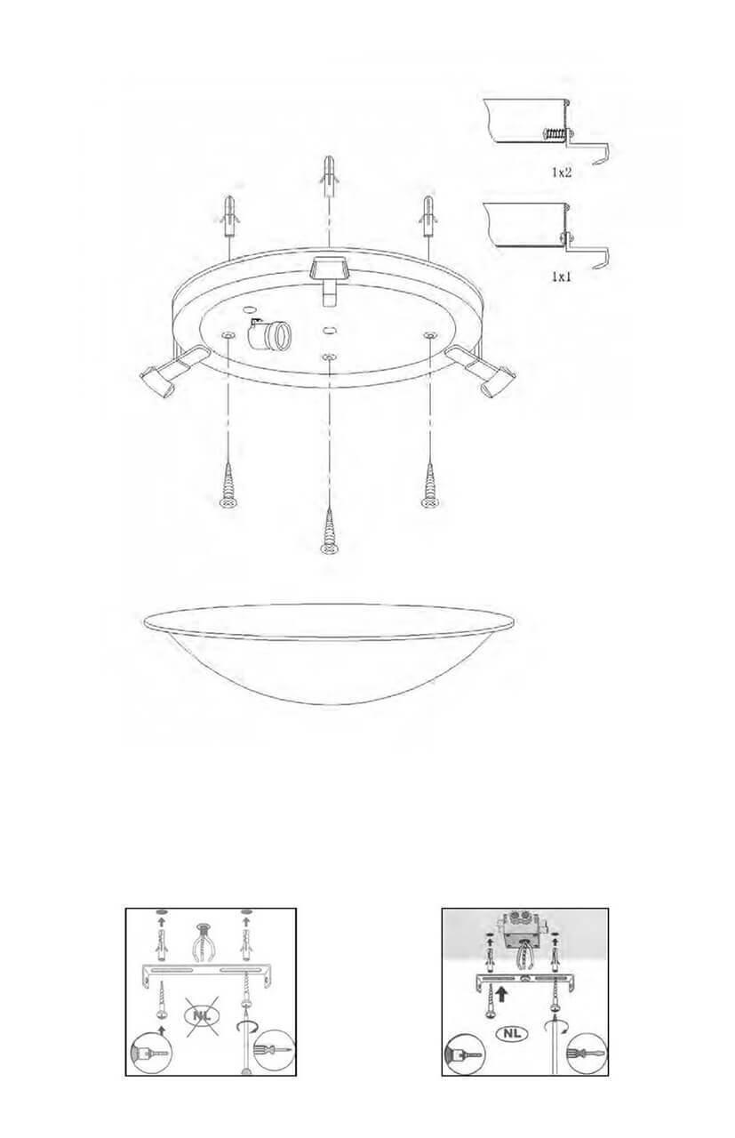 Для светильника необходима 1 лампа накаливания 60 W. Габариты изделия: высота – 80 мм, диаметр – 300 мм.