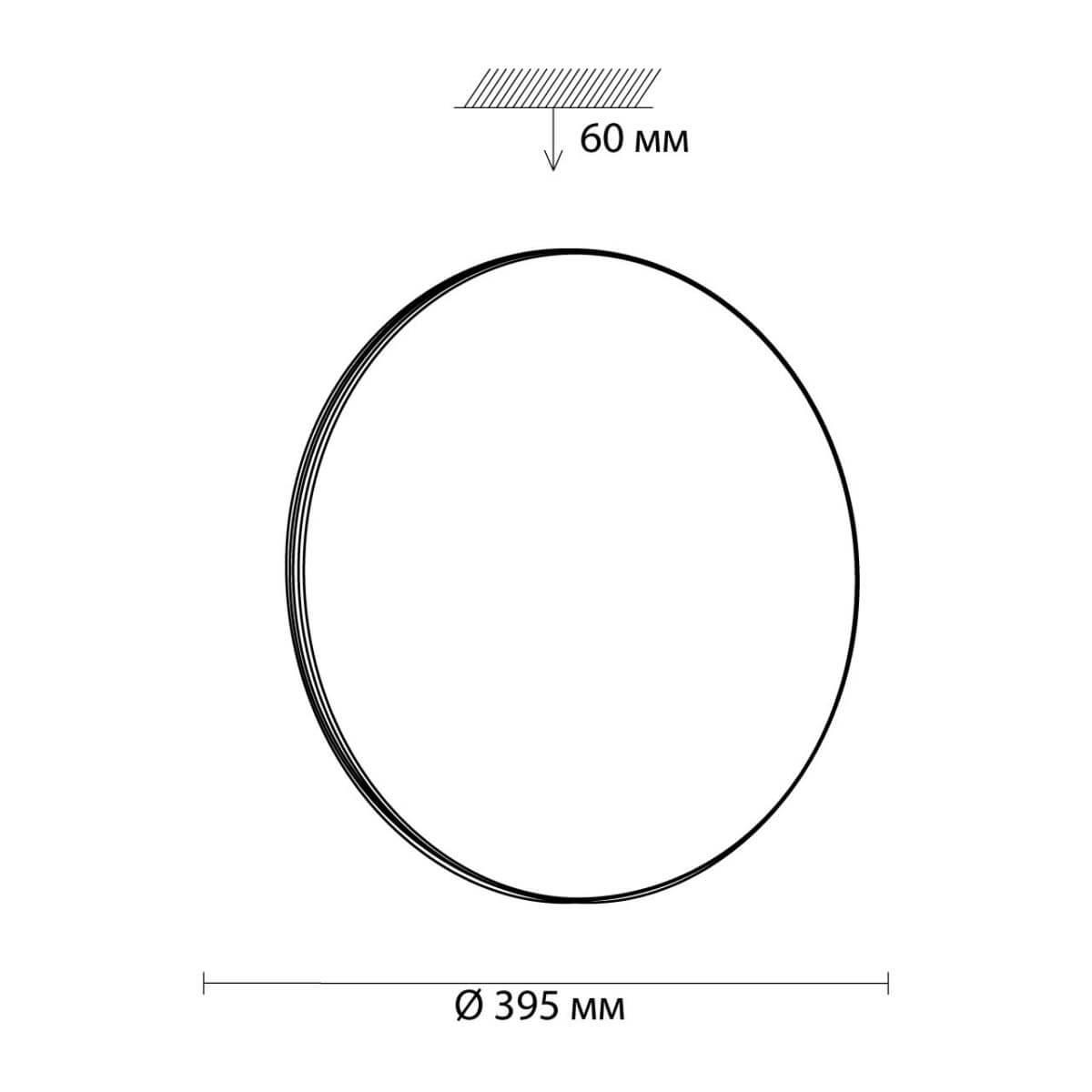 Для светильника необходима светодиодных ламп 48 W. Габариты изделия: высота – 60 мм, диаметр – 395 мм.