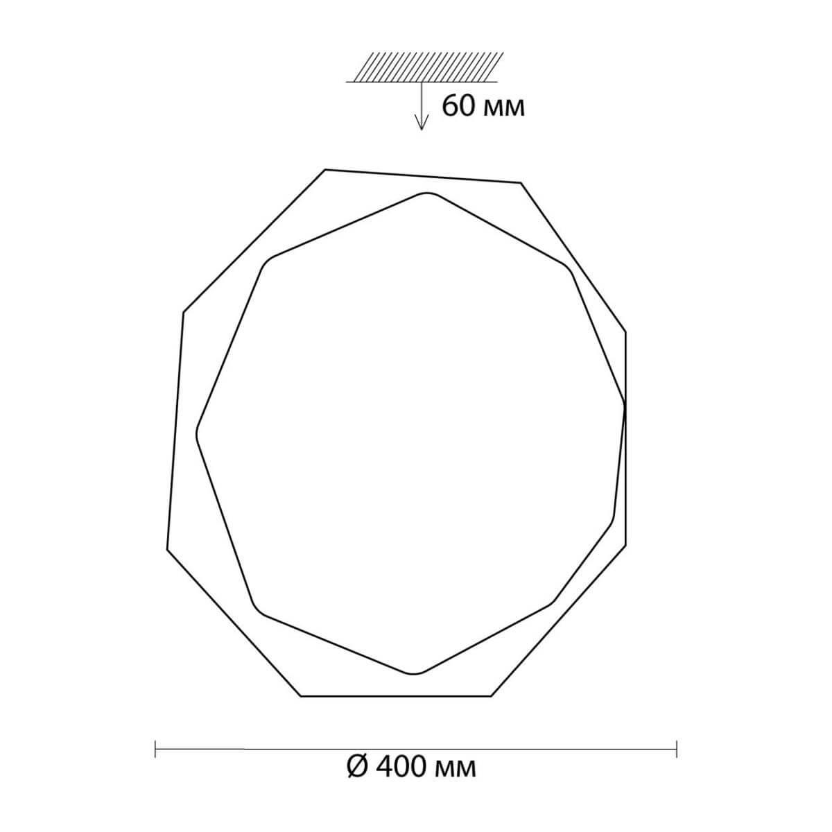 Для светильника необходима светодиодных ламп 48 W. Габариты изделия: высота – 60 мм, диаметр – 400 мм.