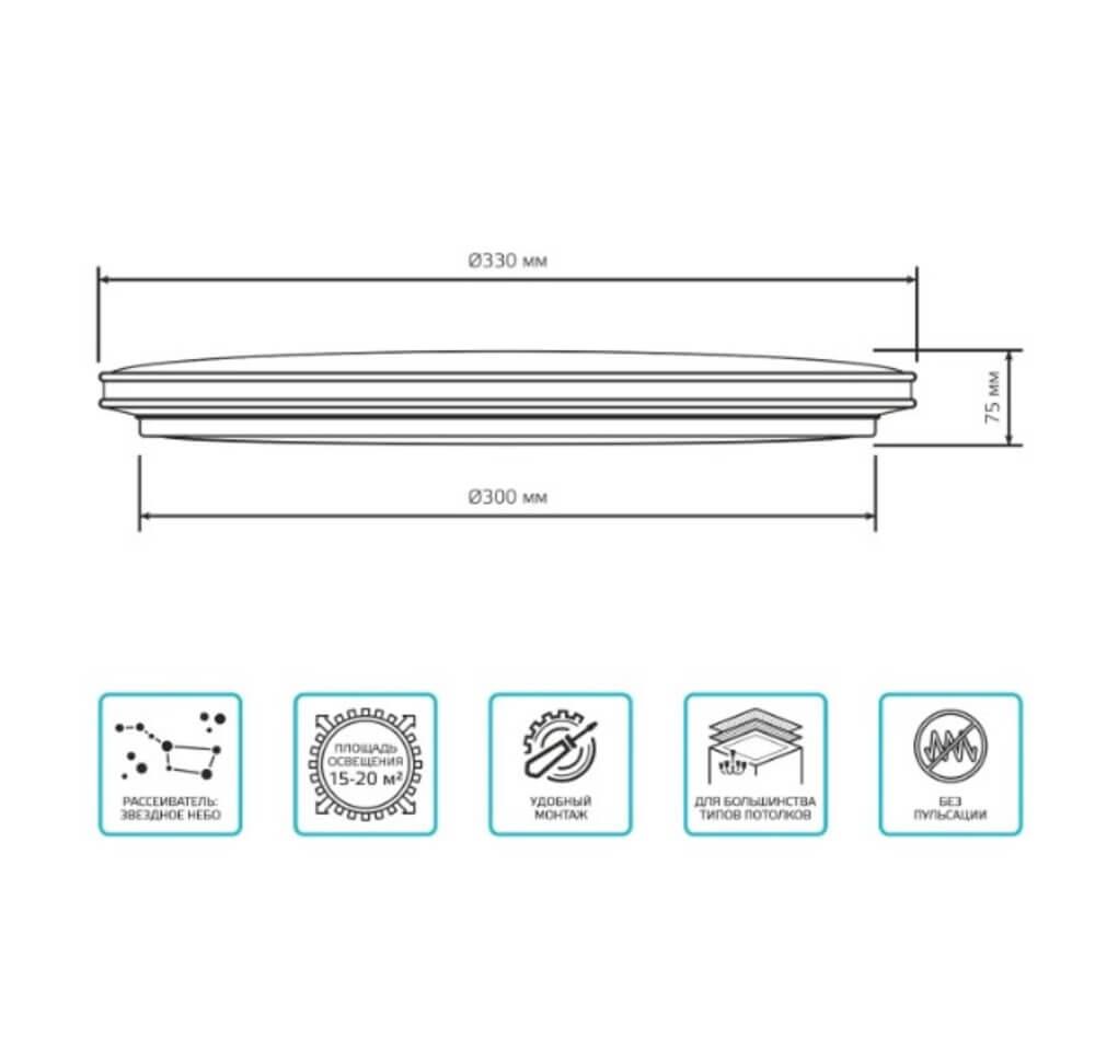 Для светильника необходима светодиодных ламп 24 W. Габариты изделия: высота – 75 мм, диаметр – мм.